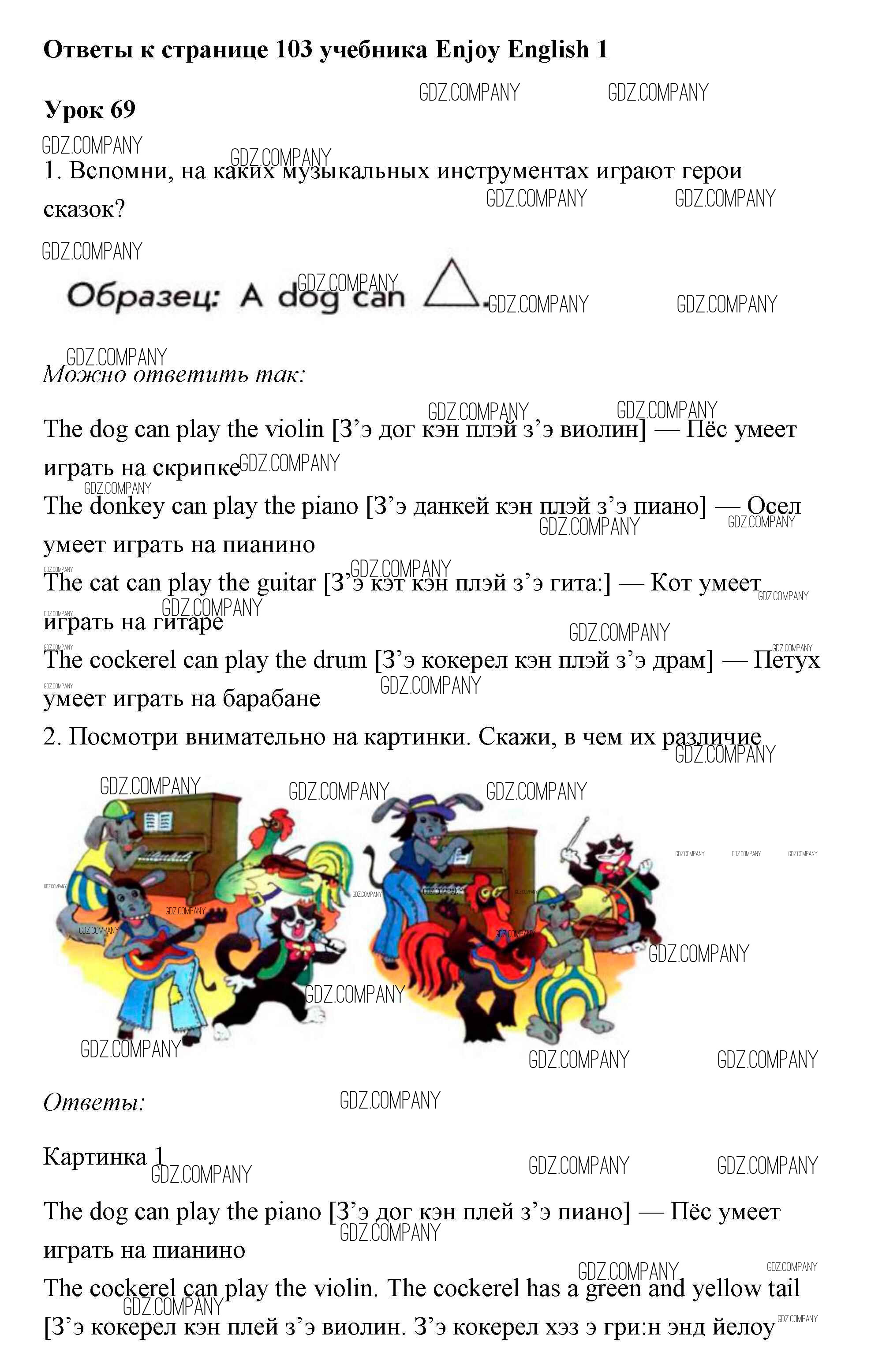 Здесь готовые ответы по Английскому языку за 1 (первый) класс от Биболетова, Добрынина, Ленская Учебник Enjoy English (издательство: Титул от 2010 г.) № 103