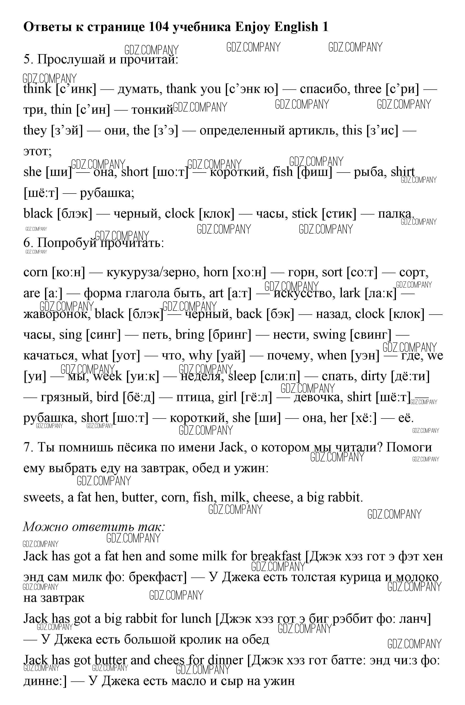 Здесь готовые ответы по Английскому языку за 1 (первый) класс от Биболетова, Добрынина, Ленская Учебник Enjoy English (издательство: Титул от 2010 г.) № 104