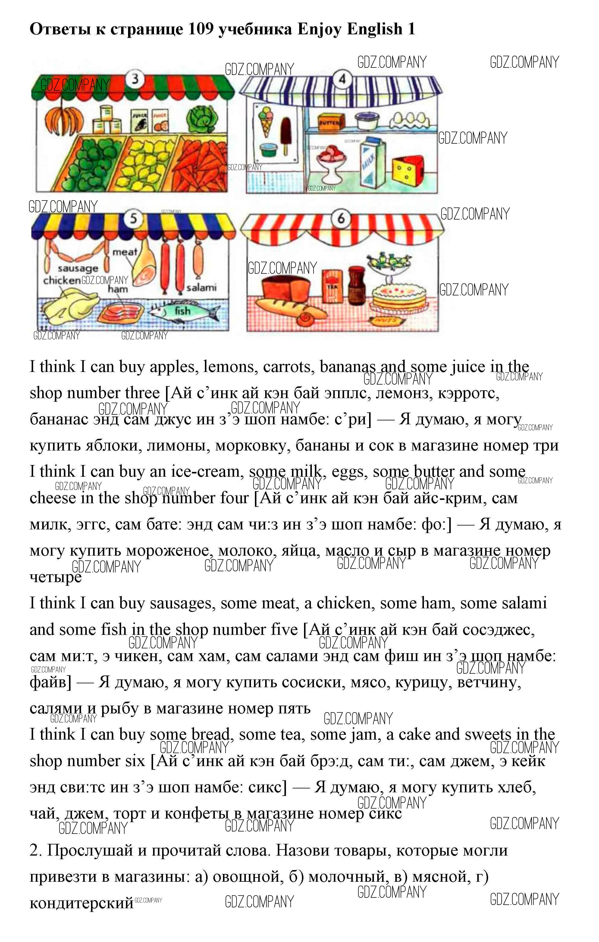 Здесь готовые ответы по Английскому языку за 1 (первый) класс от Биболетова, Добрынина, Ленская Учебник Enjoy English (издательство: Титул от 2010 г.) № 109