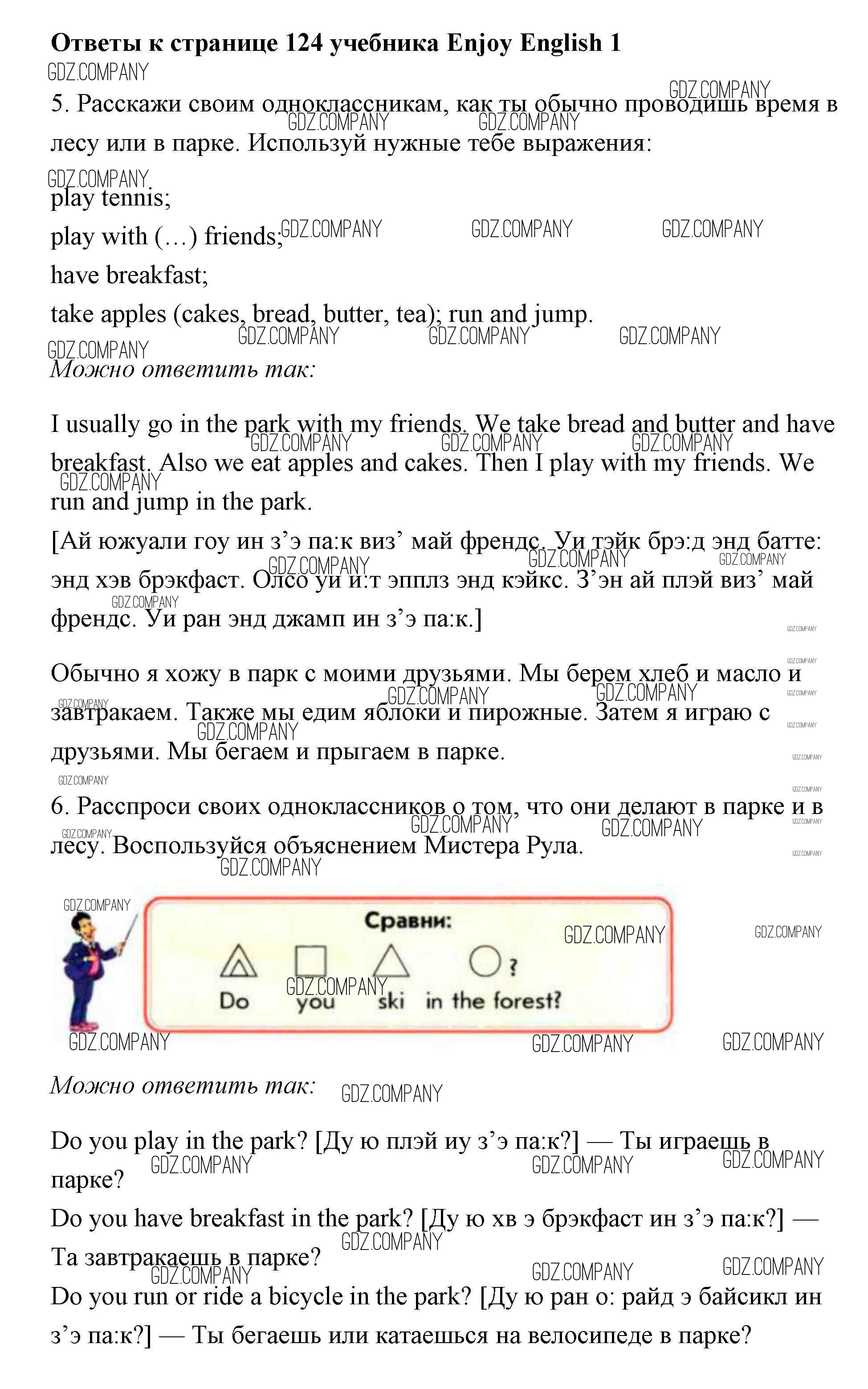Здесь готовые ответы по Английскому языку за 1 (первый) класс от Биболетова, Добрынина, Ленская Учебник Enjoy English (издательство: Титул от 2010 г.) № 124