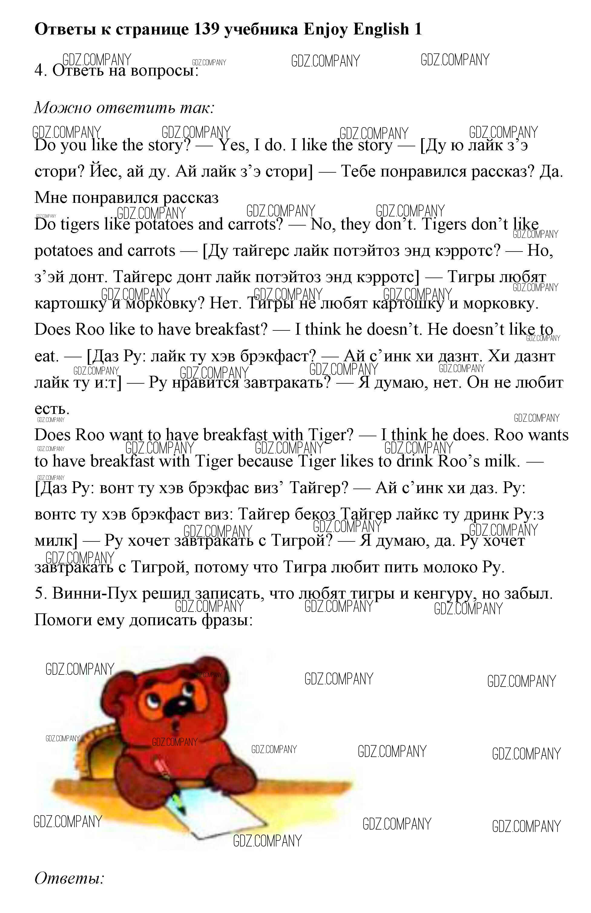 Здесь готовые ответы по Английскому языку за 1 (первый) класс от Биболетова, Добрынина, Ленская Учебник Enjoy English (издательство: Титул от 2010 г.) № 139