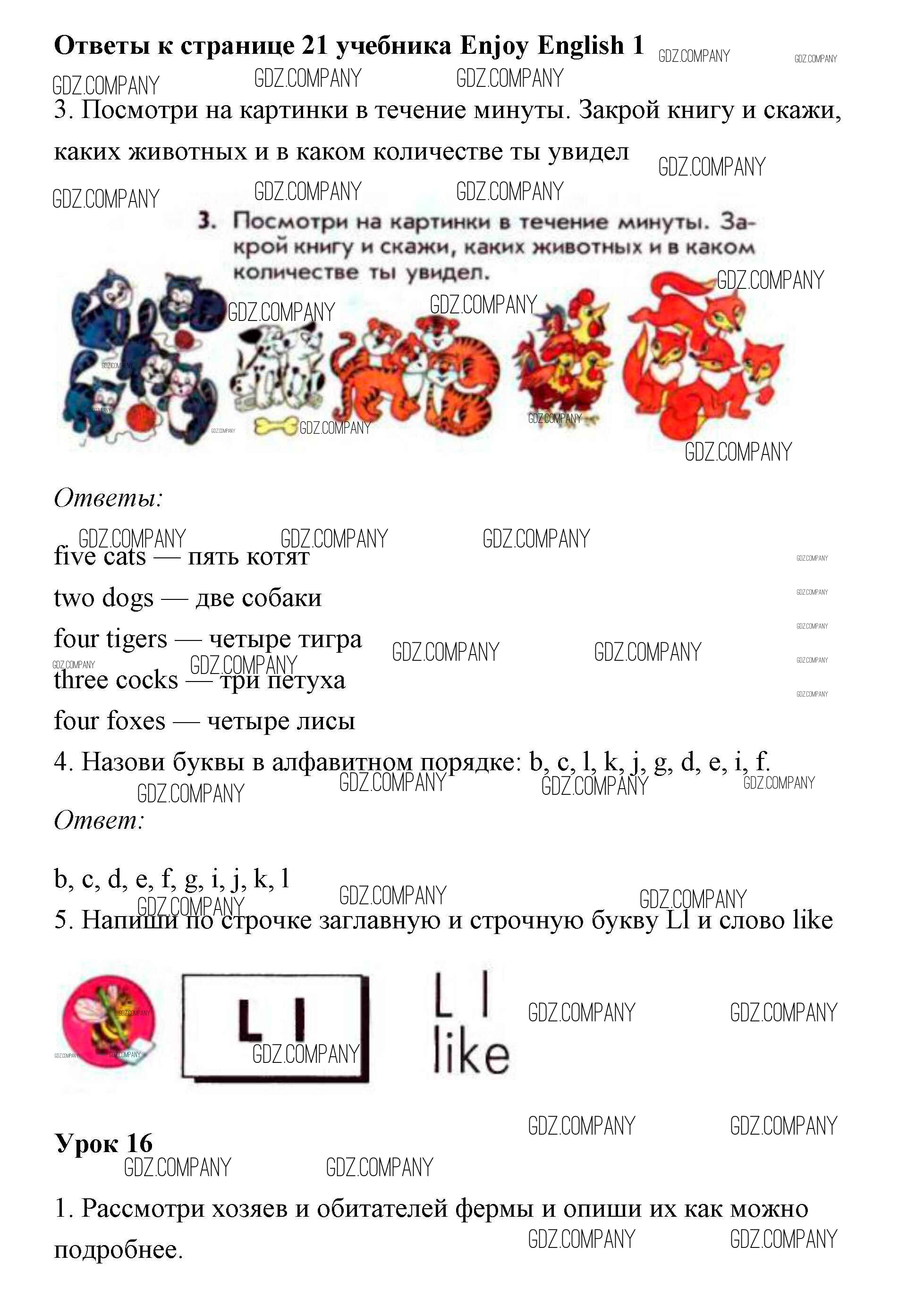 Здесь готовые ответы по Английскому языку за 1 (первый) класс от Биболетова, Добрынина, Ленская Учебник Enjoy English (издательство: Титул от 2010 г.) № 21