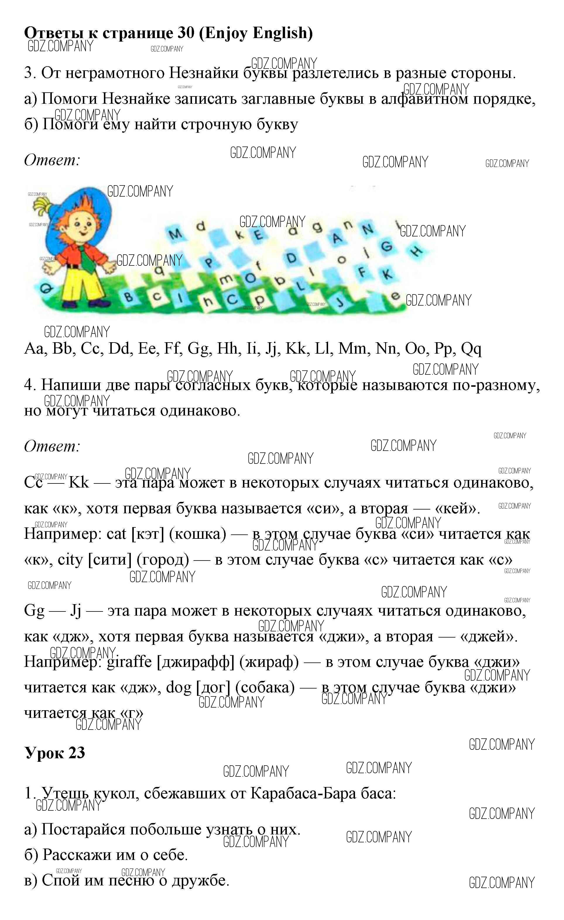 Здесь готовые ответы по Английскому языку за 1 (первый) класс от Биболетова, Добрынина, Ленская Учебник Enjoy English (издательство: Титул от 2010 г.) № 30