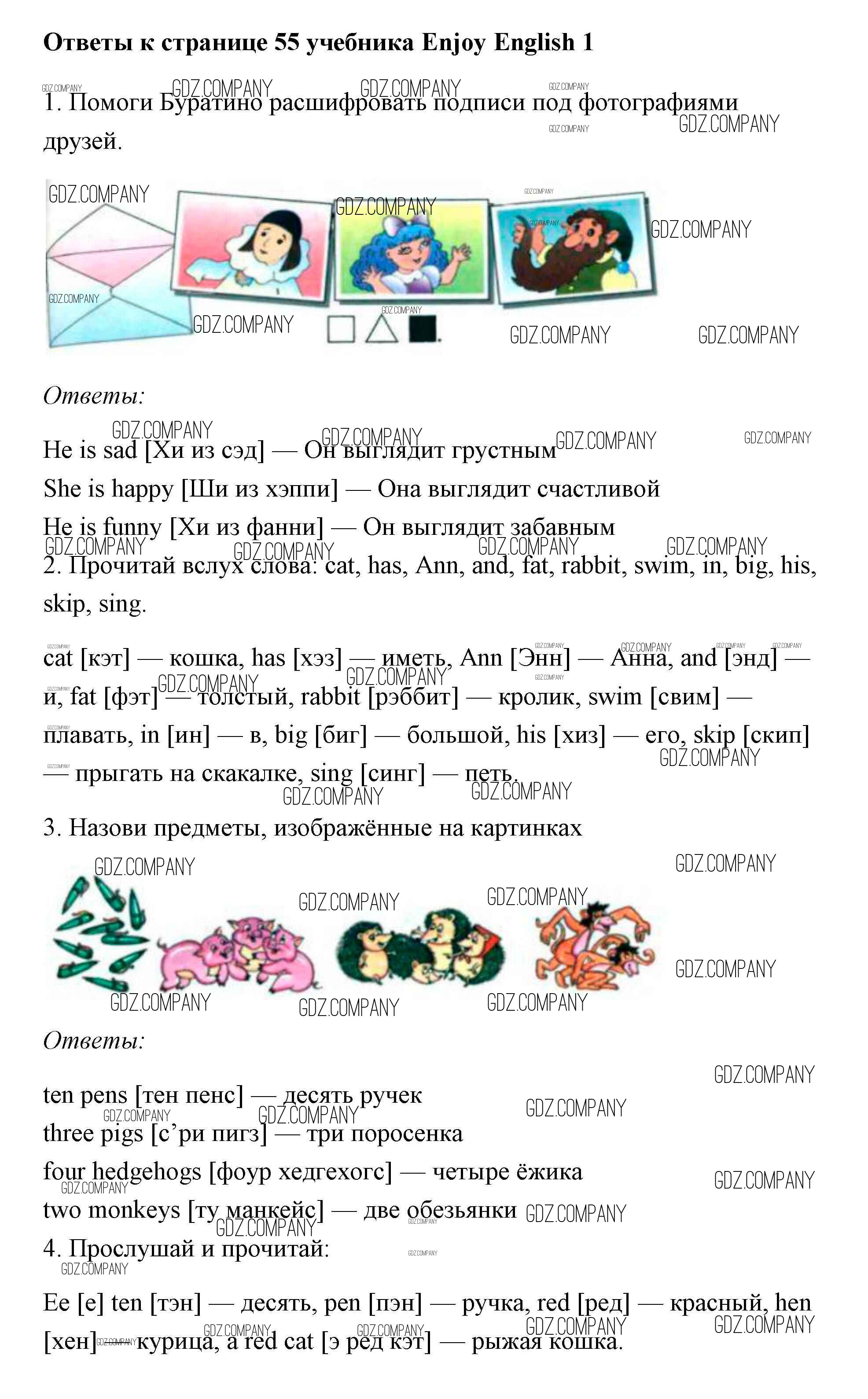 Здесь готовые ответы по Английскому языку за 1 (первый) класс от Биболетова, Добрынина, Ленская Учебник Enjoy English (издательство: Титул от 2010 г.) № 55