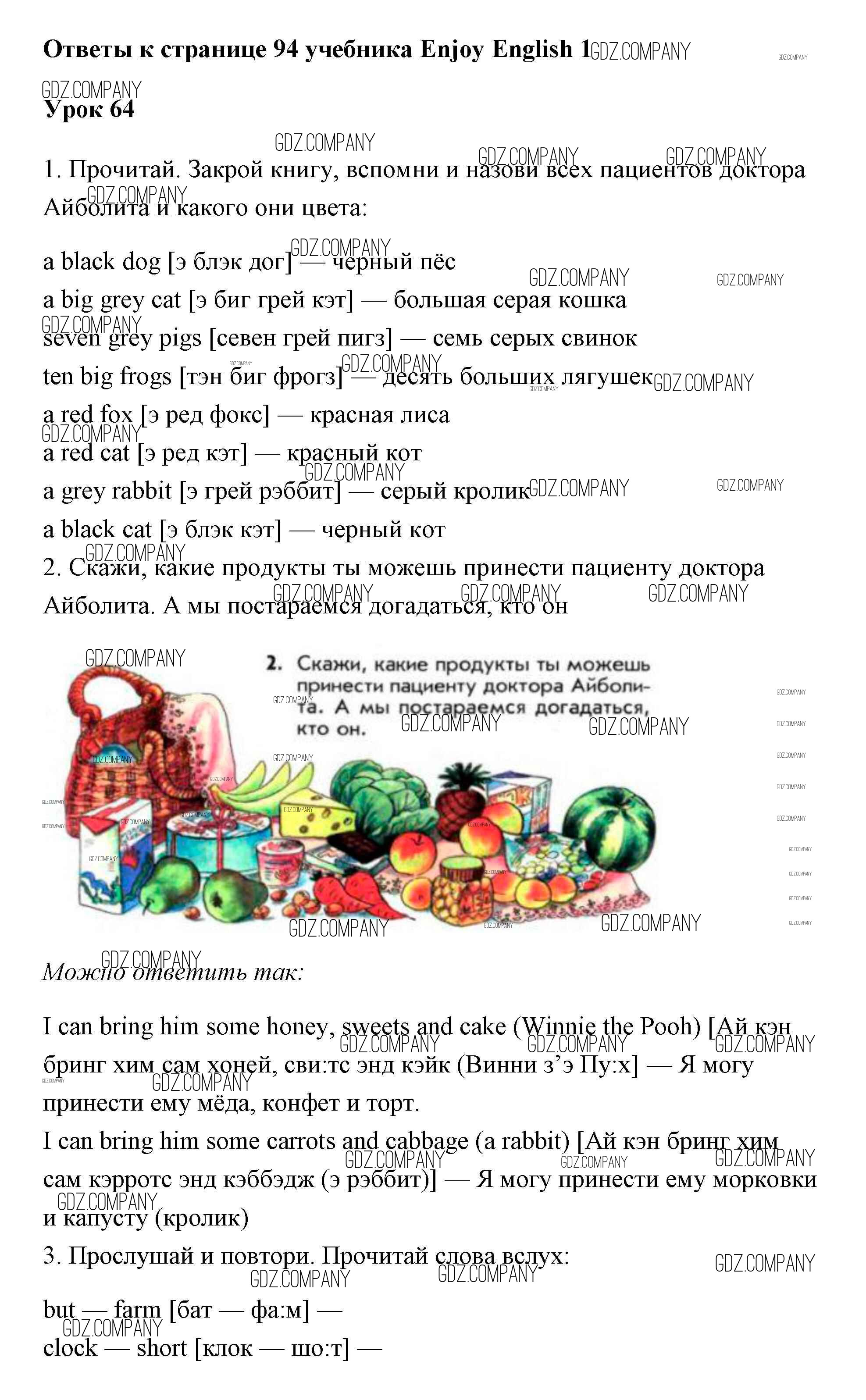 Здесь готовые ответы по Английскому языку за 1 (первый) класс от Биболетова, Добрынина, Ленская Учебник Enjoy English (издательство: Титул от 2010 г.) № 94