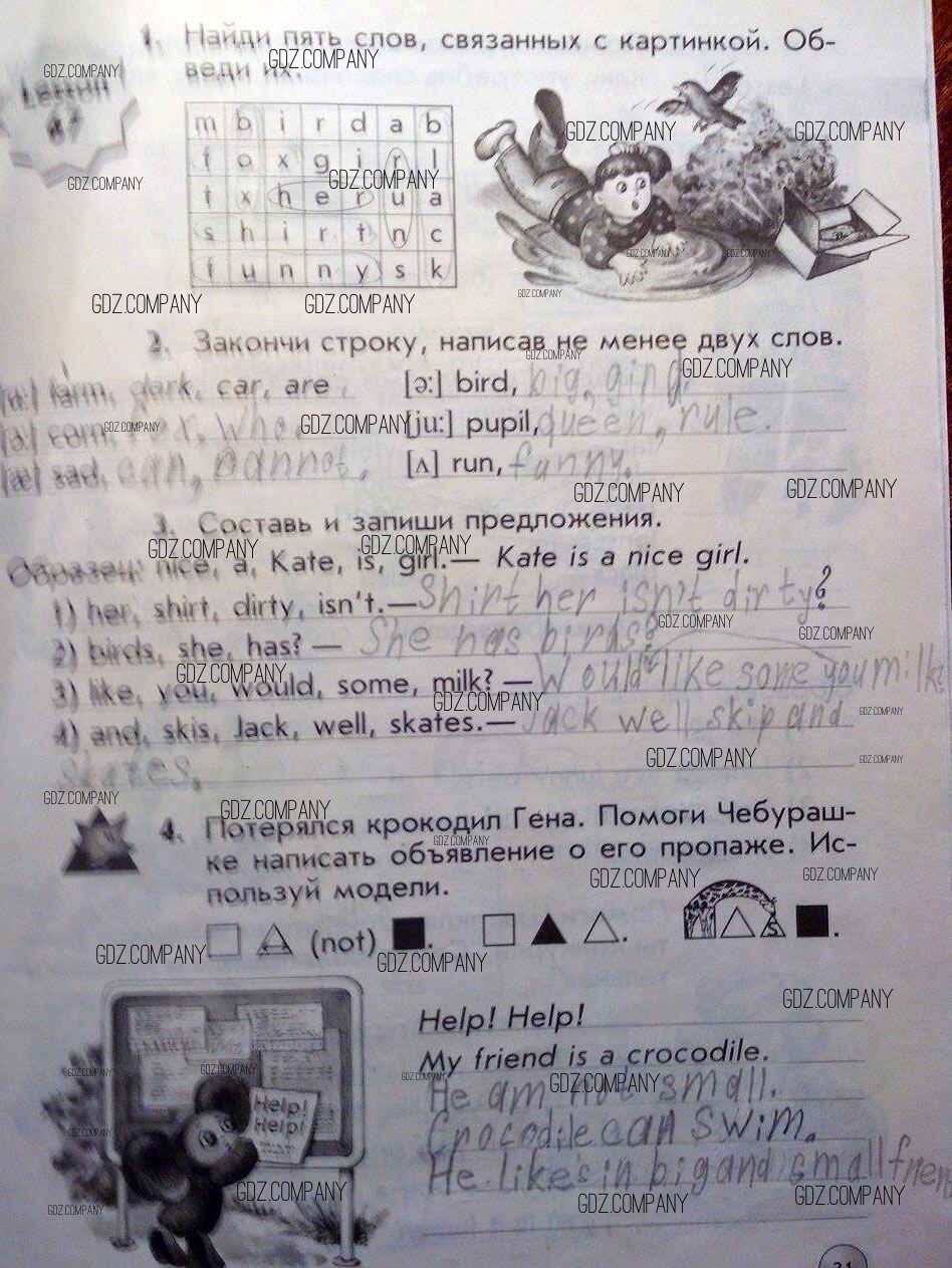 Здесь готовые ответы по Английскому языку за 1 (первый) класс от Биболетова, Трубанева Рабочая тетрадь Enjoy English (издательство: Аст/Астрель от 2015 г.) № 31
