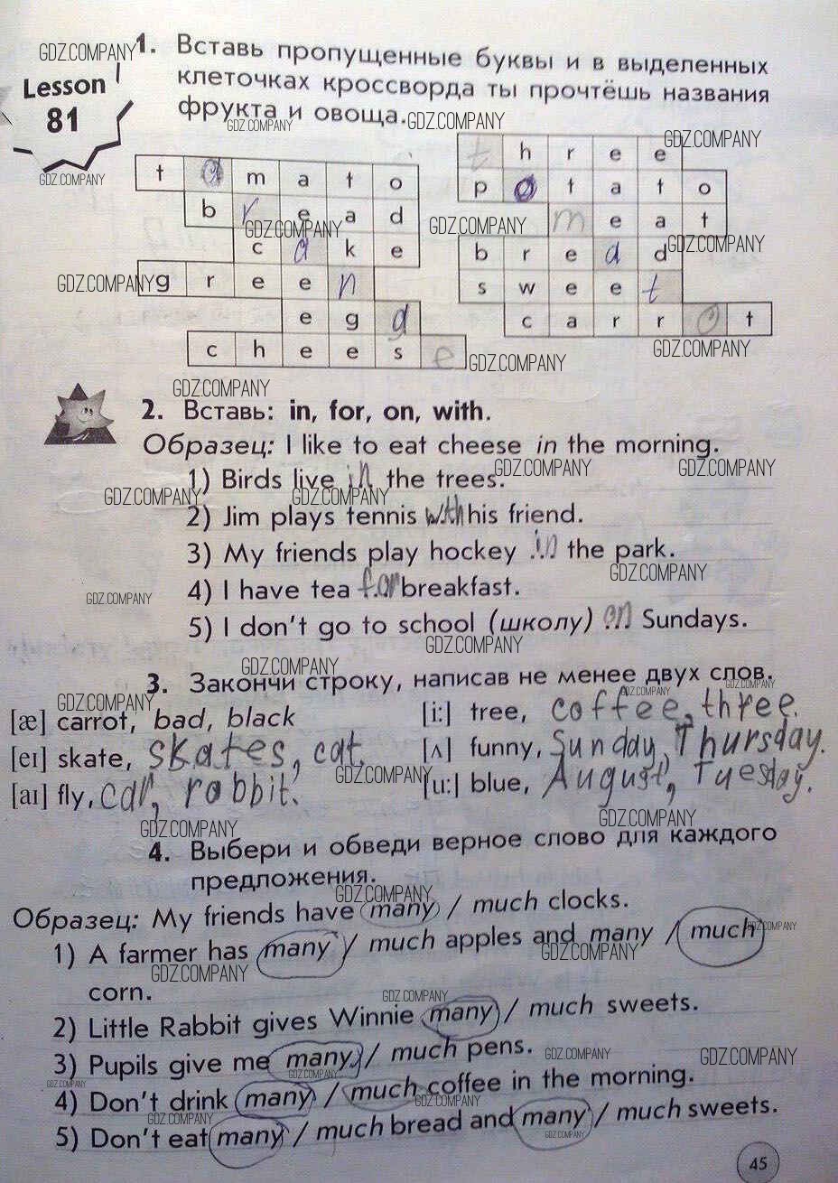 Здесь готовые ответы по Английскому языку за 1 (первый) класс от Биболетова, Трубанева Рабочая тетрадь Enjoy English (издательство: Аст/Астрель от 2015 г.) № 45
