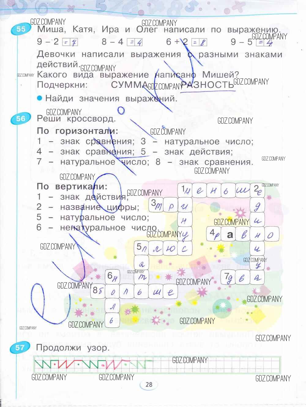 Здесь готовые ответы по Математике за 1 (первый) класс от Бененсон Рабочая тетрадь (издательство: Фёдоров от 2015 г.) № 28
