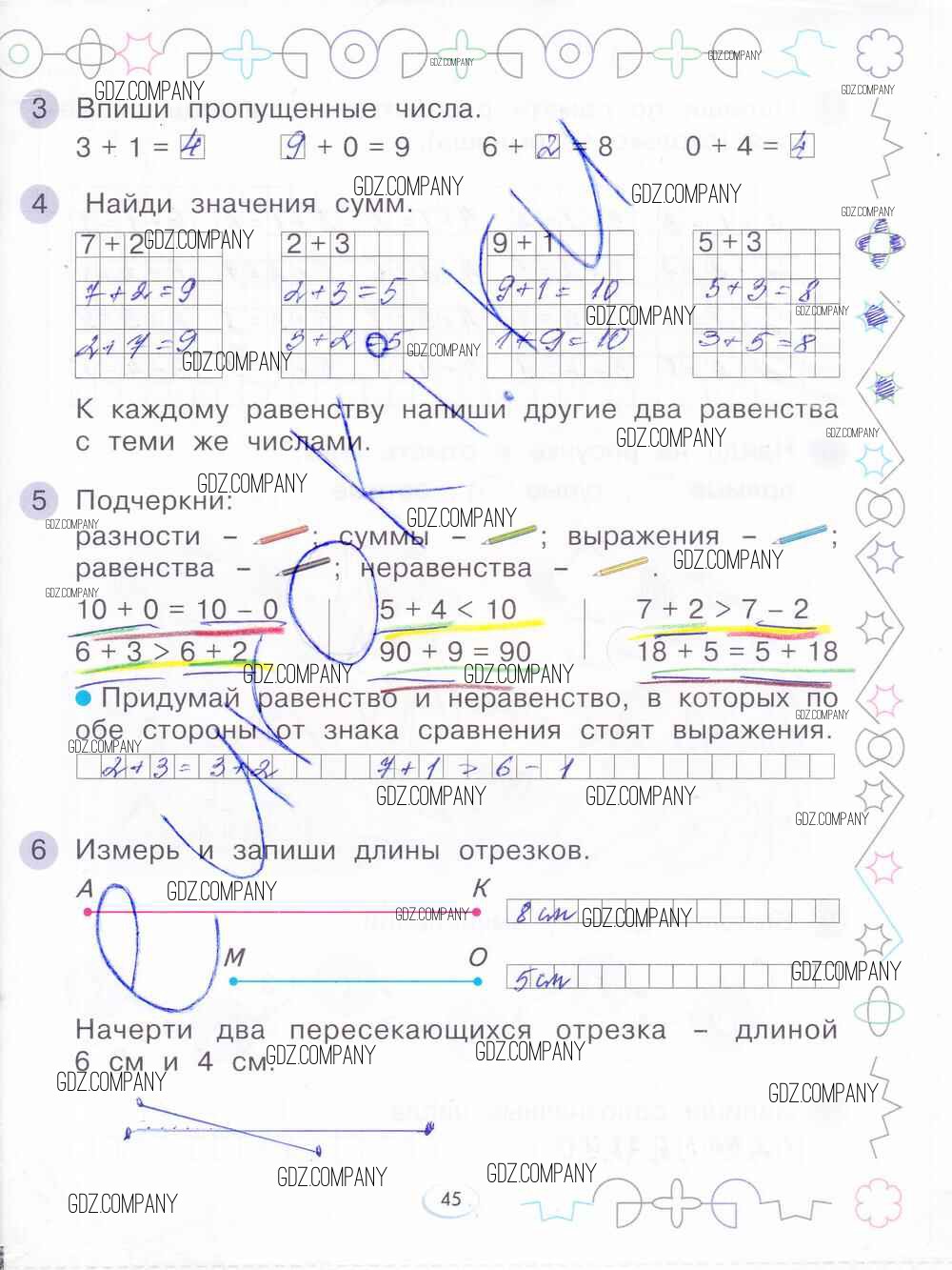 Здесь готовые ответы по Математике за 1 (первый) класс от Бененсон Рабочая тетрадь (издательство: Фёдоров от 2015 г.) № 45