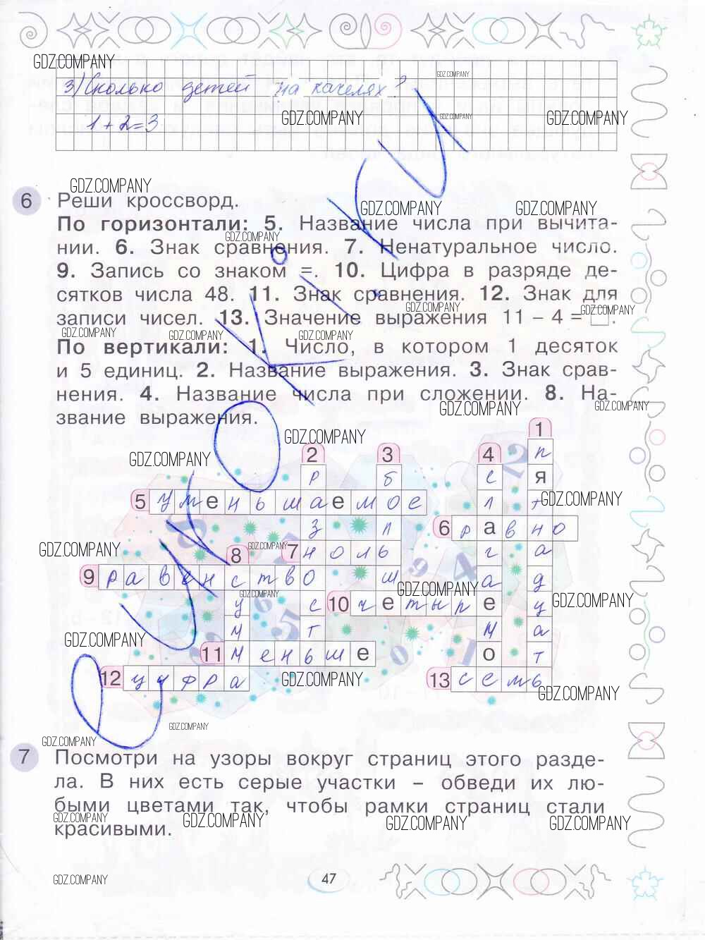 Здесь готовые ответы по Математике за 1 (первый) класс от Бененсон Рабочая тетрадь (издательство: Фёдоров от 2015 г.) № 47