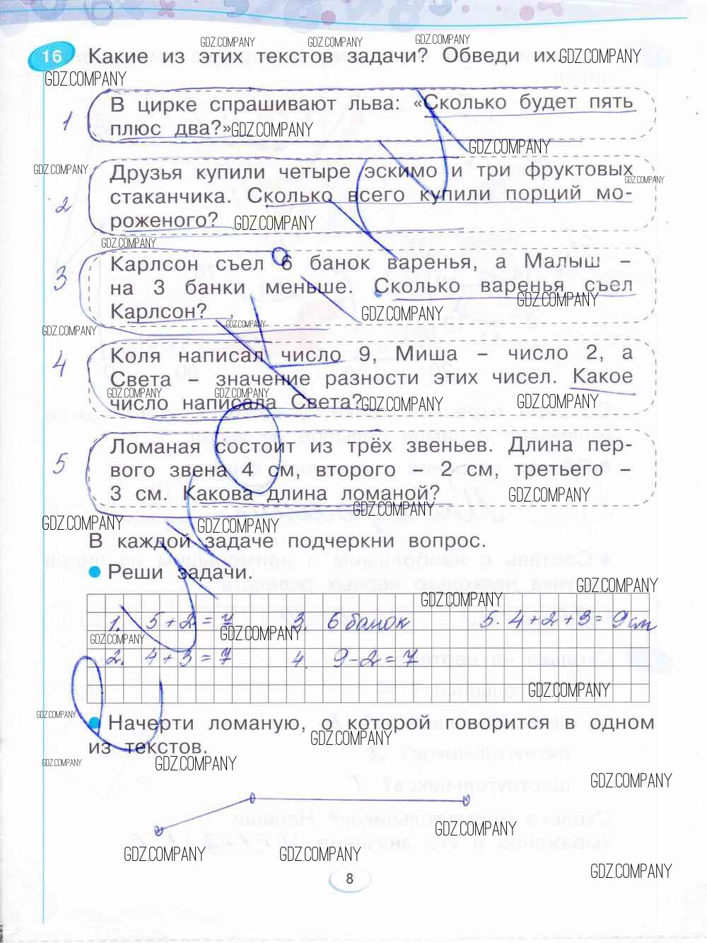 Здесь готовые ответы по Математике за 1 (первый) класс от Бененсон Рабочая тетрадь (издательство: Фёдоров от 2015 г.) № 8
