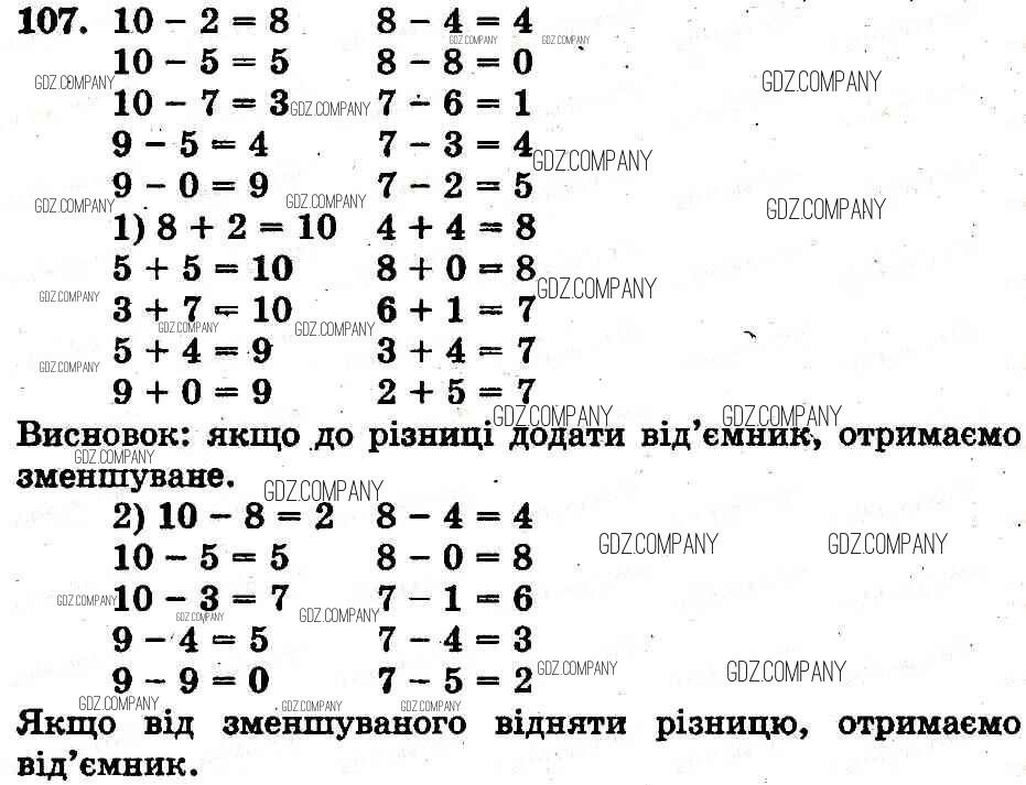 Здесь готовые ответы по Математике за 1 (первый) класс от Богданович, Лишенко Учебник (издательство: Генеза от 2012 г.) № 107