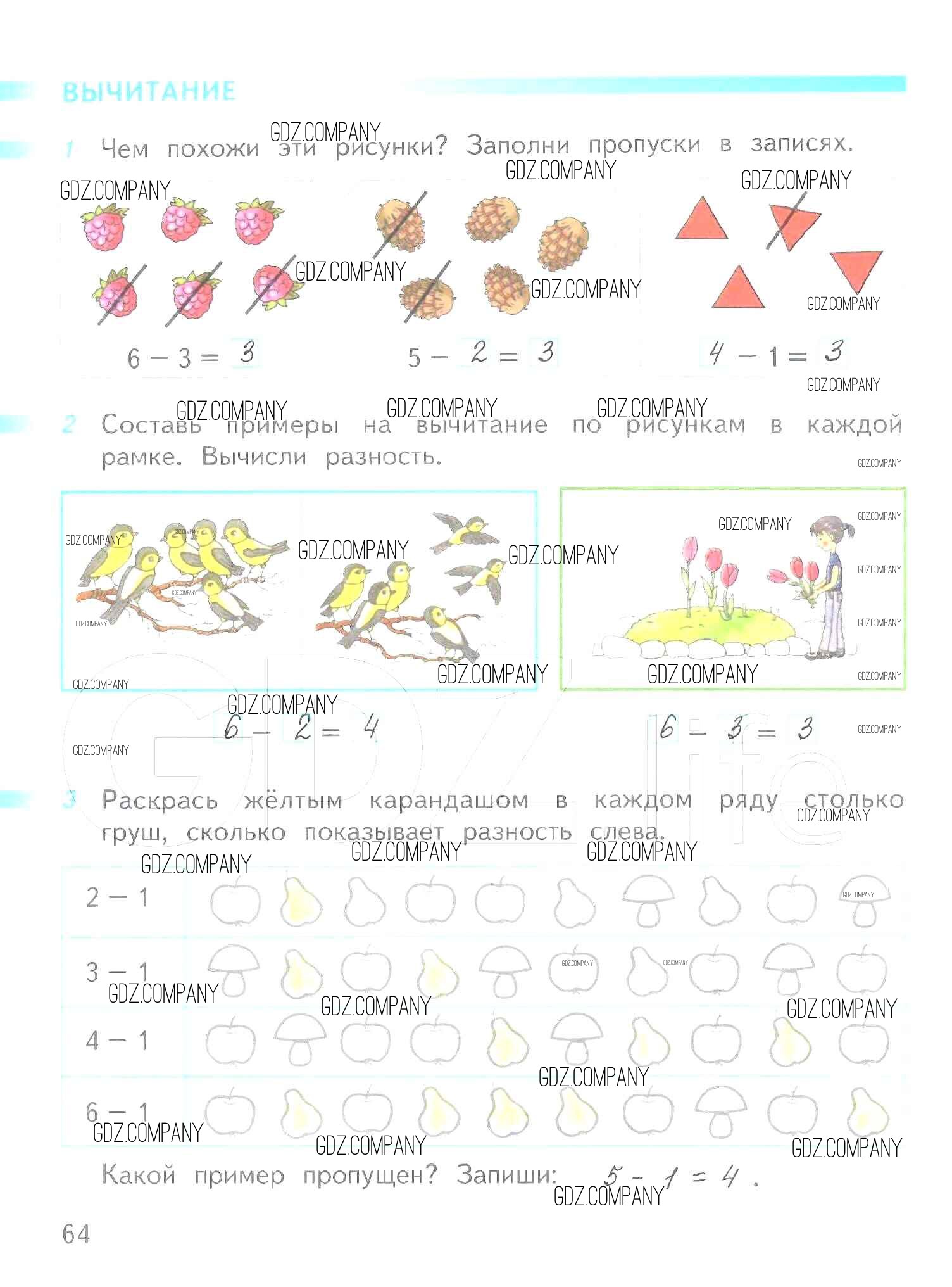 Здесь готовые ответы по Математике за 1 (первый) класс от Дорофеев, Миракова, Бука Рабочая тетрадь Перспектива (издательство: Просвещение от 2016 г.) № 64