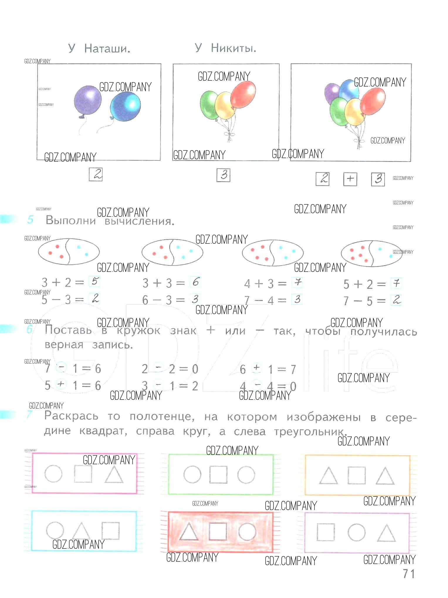 Здесь готовые ответы по Математике за 1 (первый) класс от Дорофеев, Миракова, Бука Рабочая тетрадь Перспектива (издательство: Просвещение от 2016 г.) № 71
