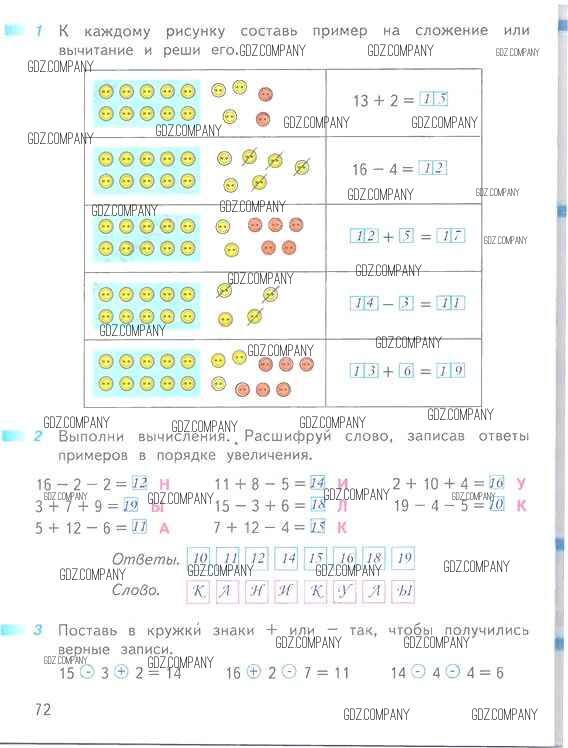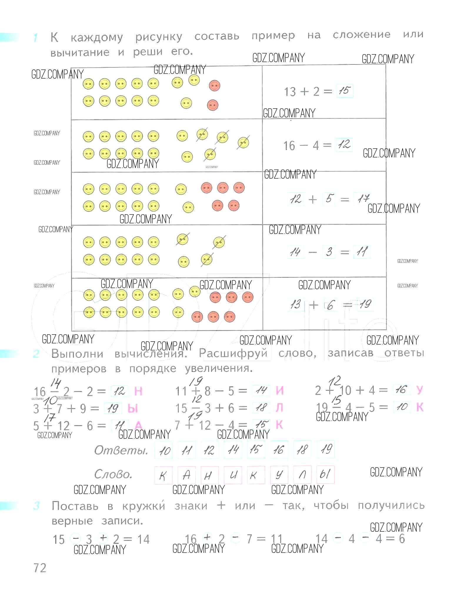 Здесь готовые ответы по Математике за 1 (первый) класс от Дорофеев, Миракова, Бука Рабочая тетрадь Перспектива (издательство: Просвещение от 2016 г.) № 72