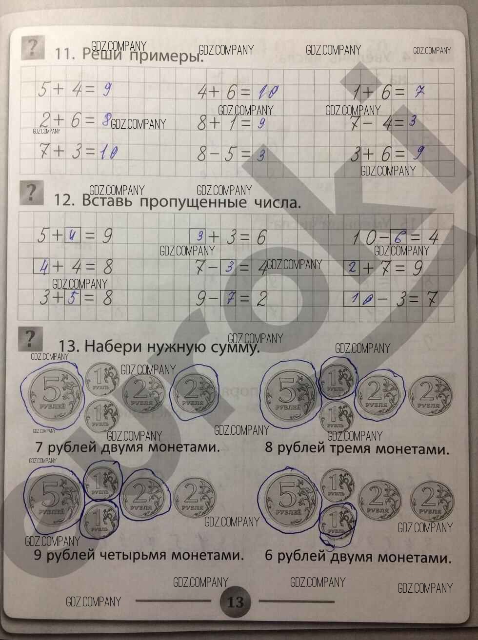 Здесь готовые ответы по Математике за 1 (первый) класс от Губка Тренажёр (издательство: Феникс от 2017 г.) № 13