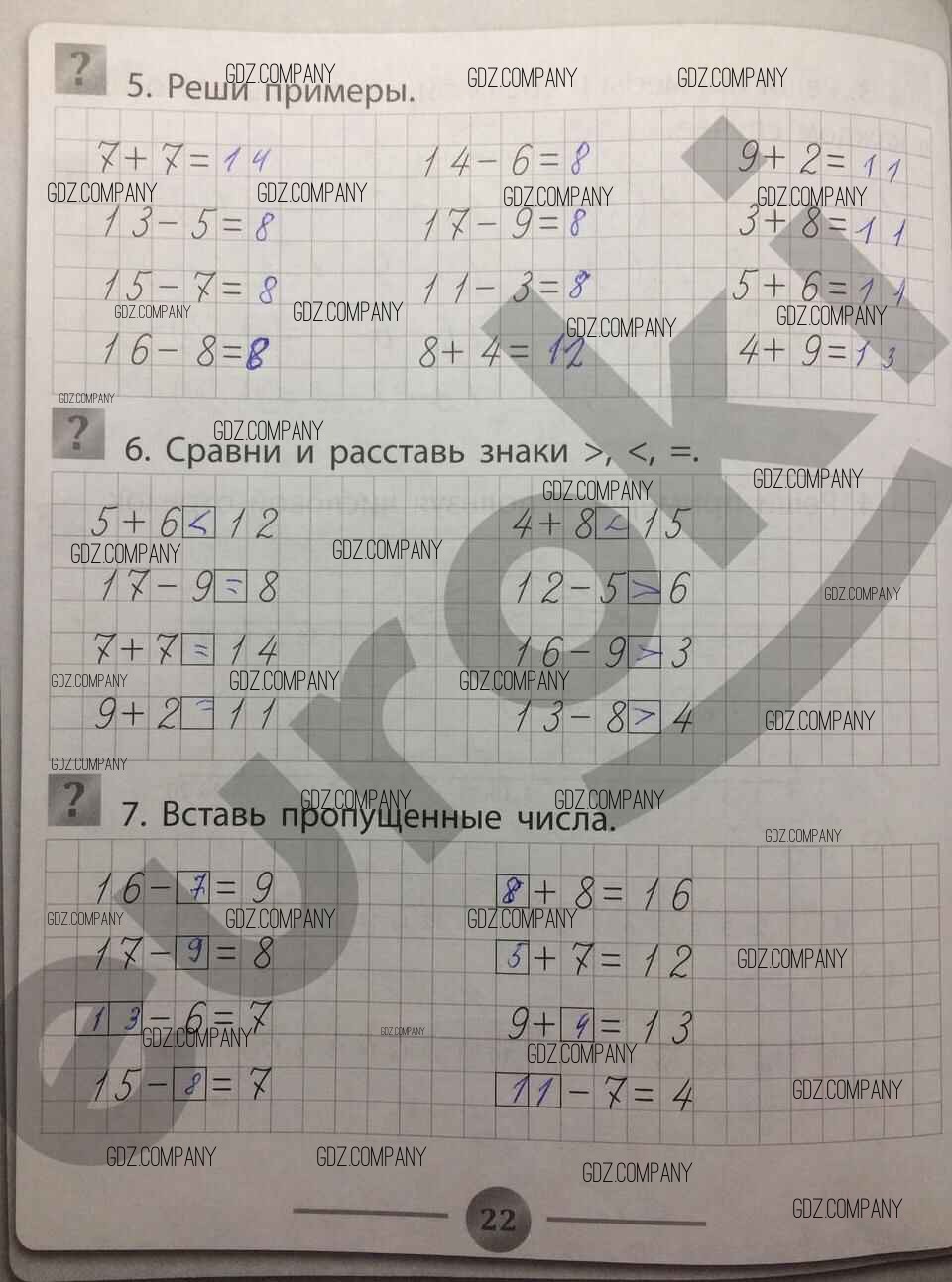 Здесь готовые ответы по Математике за 1 (первый) класс от Губка Тренажёр (издательство: Феникс от 2017 г.) № 22