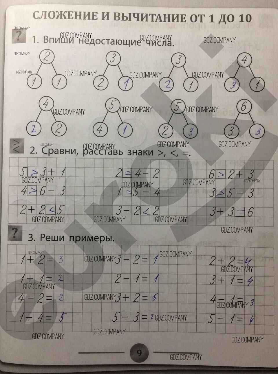 Здесь готовые ответы по Математике за 1 (первый) класс от Губка Тренажёр (издательство: Феникс от 2017 г.) № 9