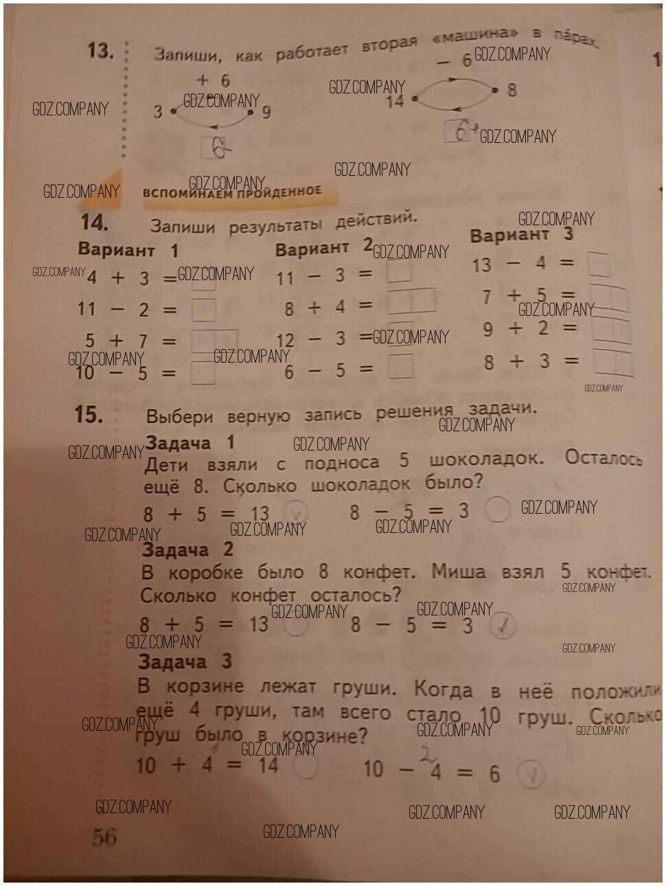 Здесь готовые ответы по Математике за 1 (первый) класс от Кочурова Рабочая тетрадь Начальная школа XXI века (издательство: Вентана-граф от 2020 г.) № 56