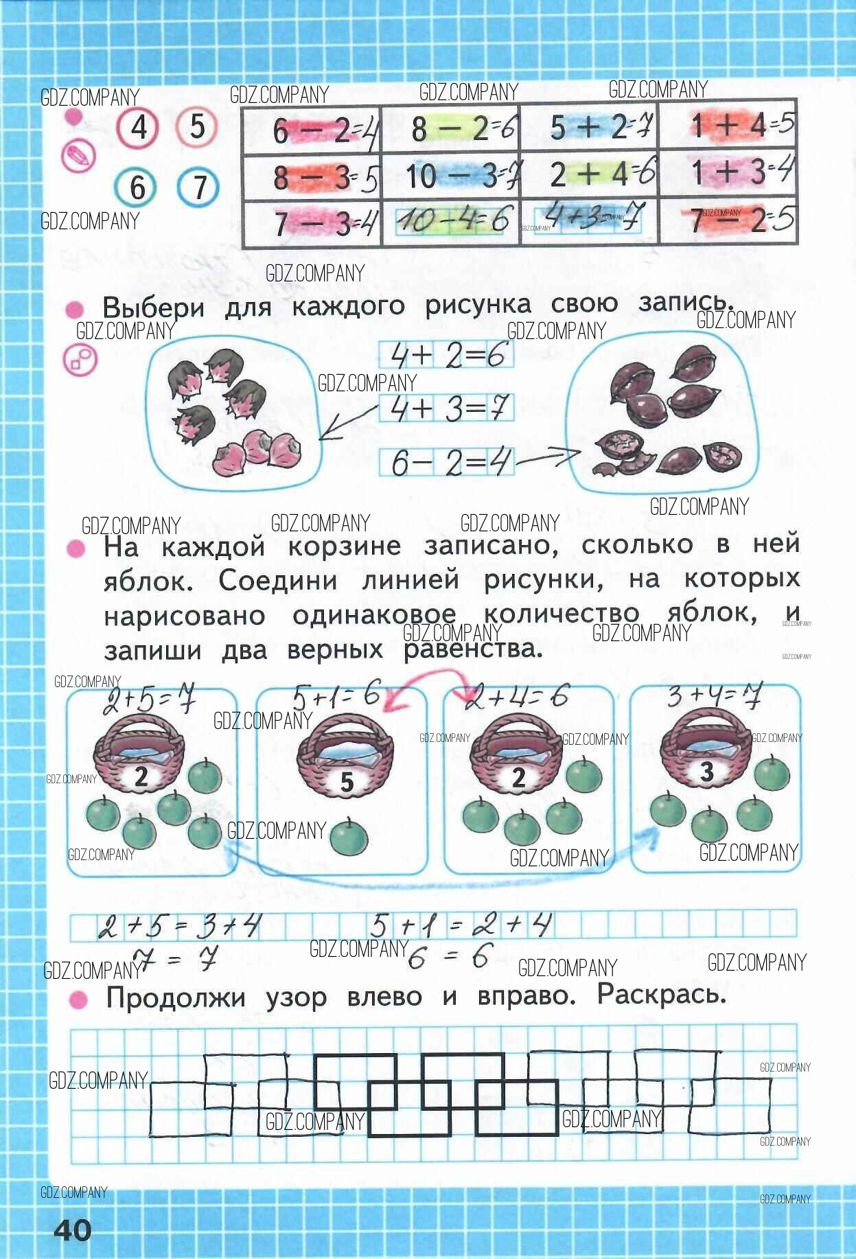 Здесь готовые ответы по Математике за 1 (первый) класс от Моро, Волкова Рабочая тетрадь Школа России (издательство: Просвещение от 2016 г.) № 40