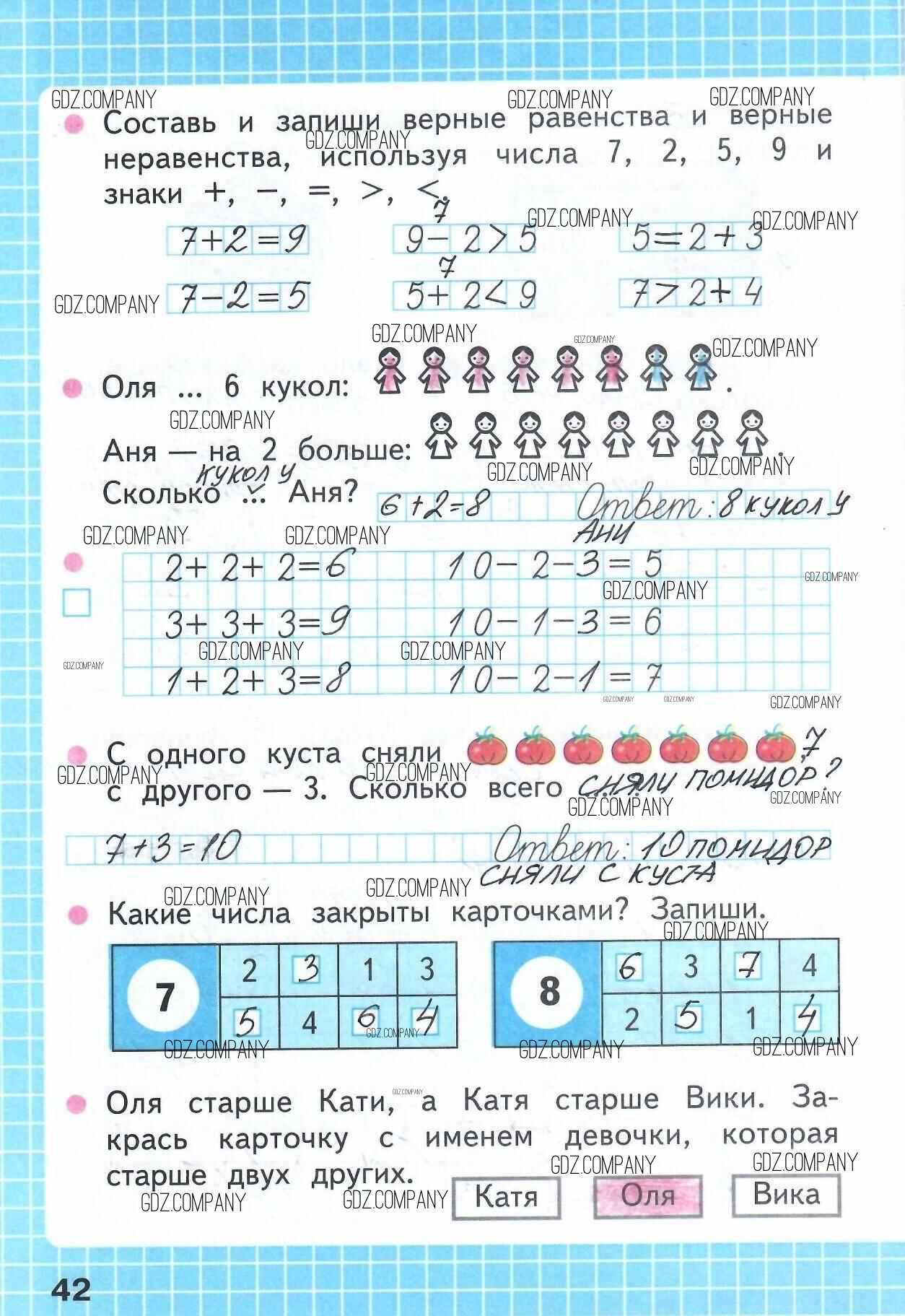 Здесь готовые ответы по Математике за 1 (первый) класс от Моро, Волкова Рабочая тетрадь Школа России (издательство: Просвещение от 2016 г.) № 42