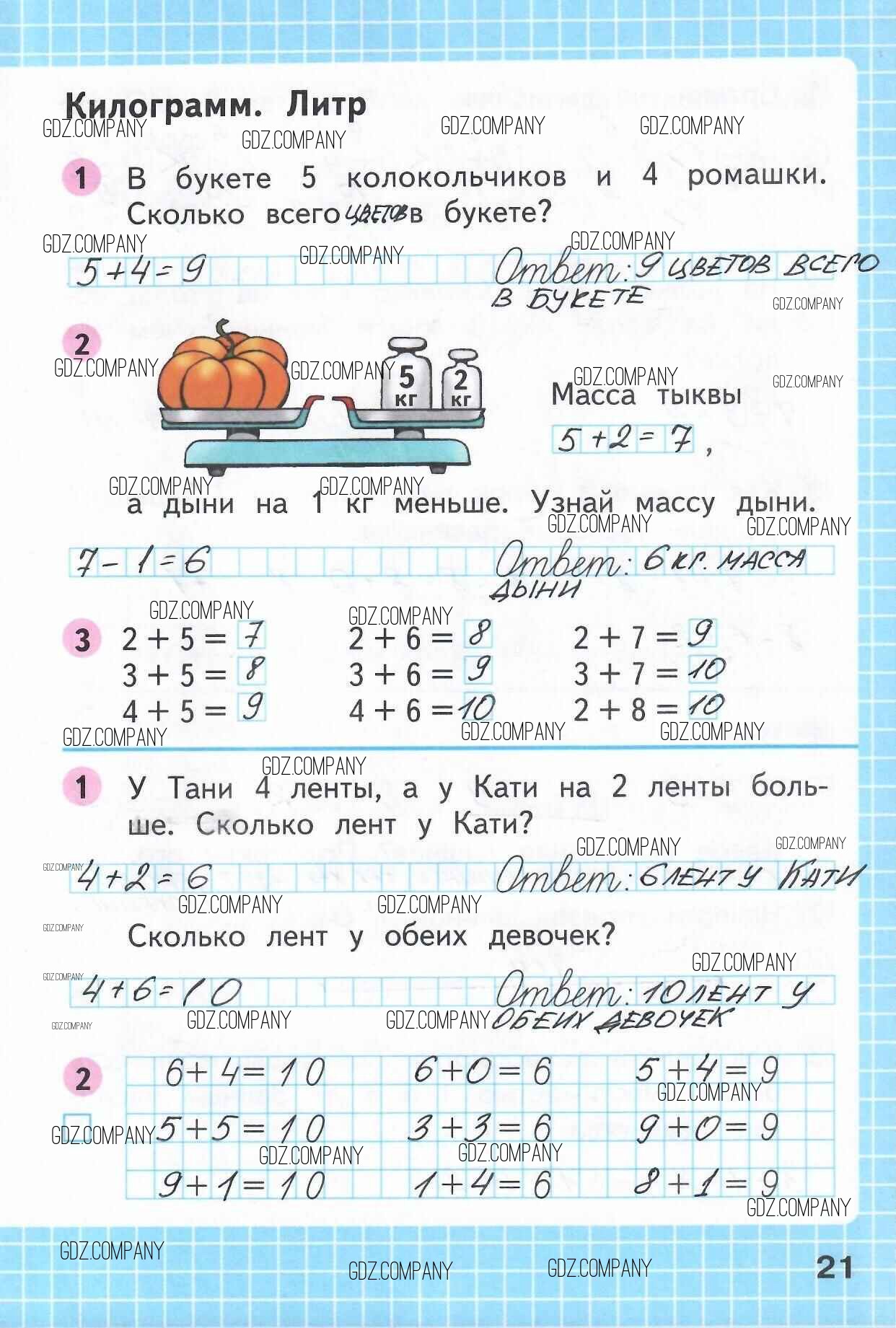 Здесь готовые ответы по Математике за 1 (первый) класс от Моро, Волкова Рабочая тетрадь Школа России (издательство: Просвещение от 2016 г.) № 21