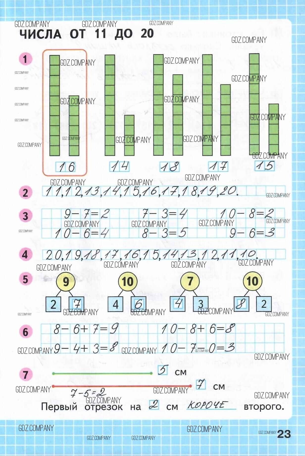 Здесь готовые ответы по Математике за 1 (первый) класс от Моро, Волкова Рабочая тетрадь Школа России (издательство: Просвещение от 2016 г.) № 23