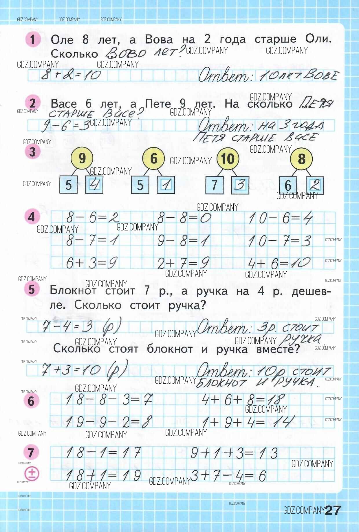 Здесь готовые ответы по Математике за 1 (первый) класс от Моро, Волкова Рабочая тетрадь Школа России (издательство: Просвещение от 2016 г.) № 27