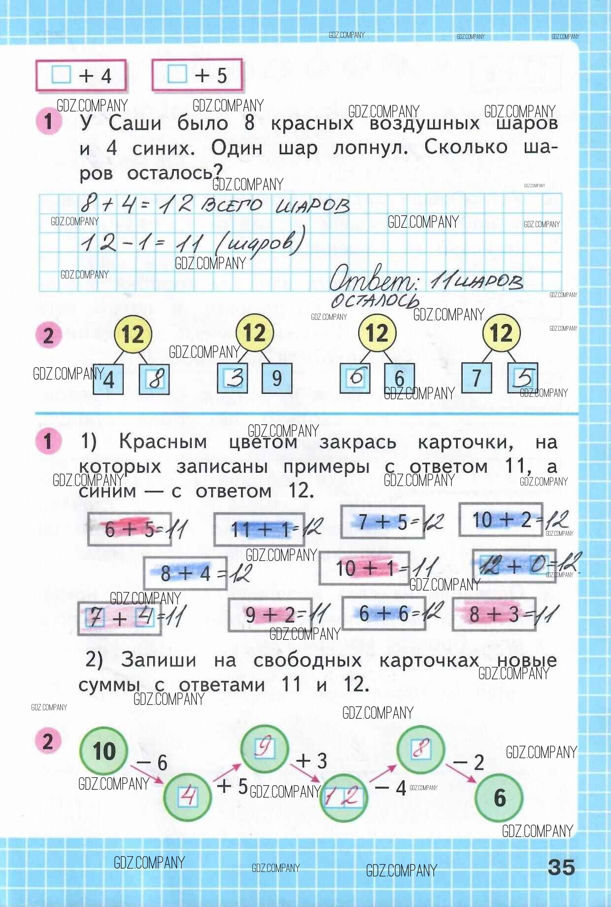 Здесь готовые ответы по Математике за 1 (первый) класс от Моро, Волкова Рабочая тетрадь Школа России (издательство: Просвещение от 2016 г.) № 35