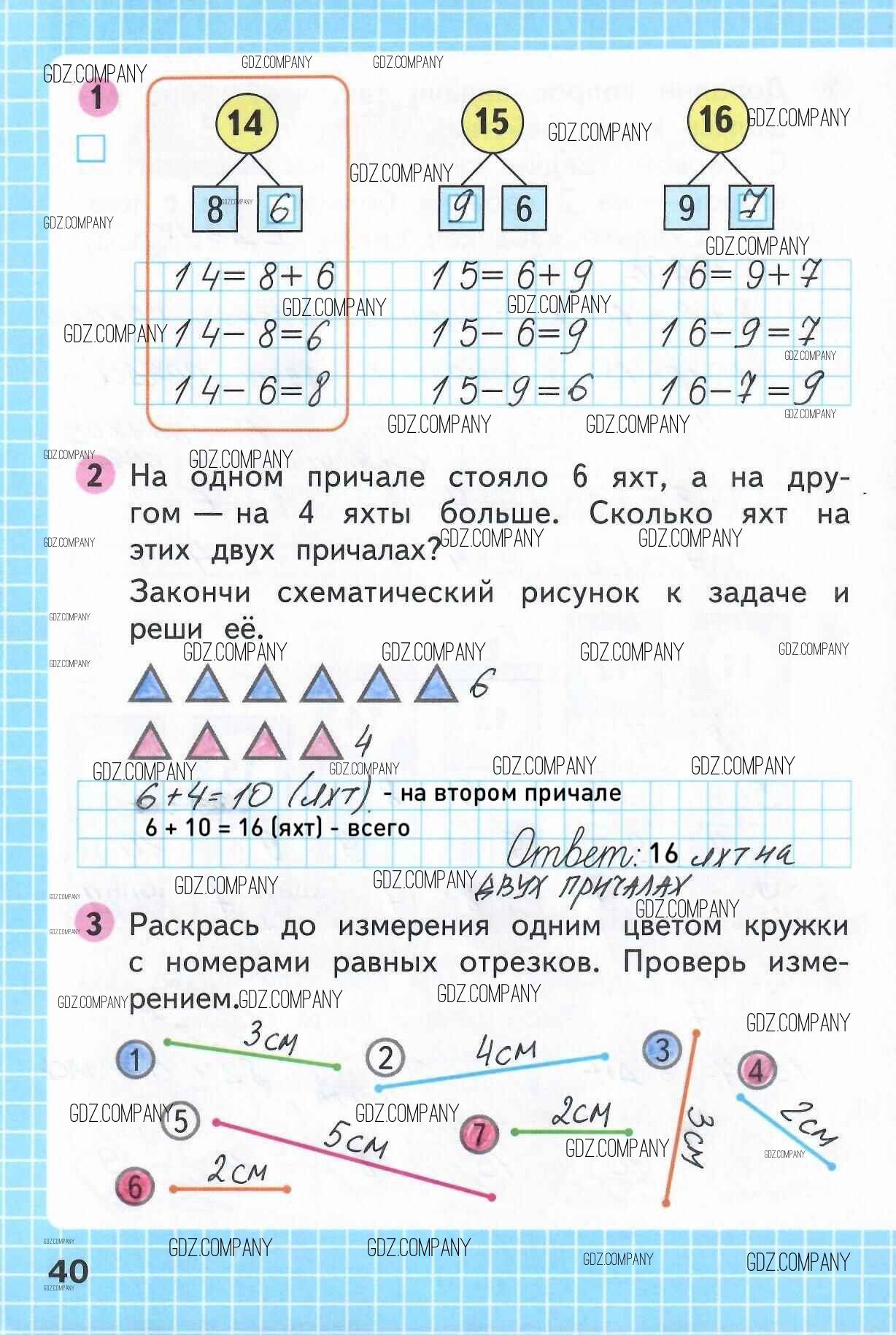 Здесь готовые ответы по Математике за 1 (первый) класс от Моро, Волкова Рабочая тетрадь Школа России (издательство: Просвещение от 2016 г.) № 40