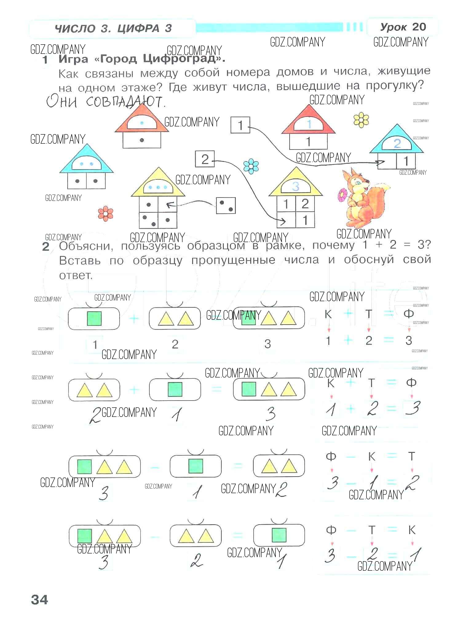 Здесь готовые ответы по Математике за 1 (первый) класс от Петерсон Рабочая тетрадь Учусь учиться (издательство: Ювента от 2016 г.) № 34