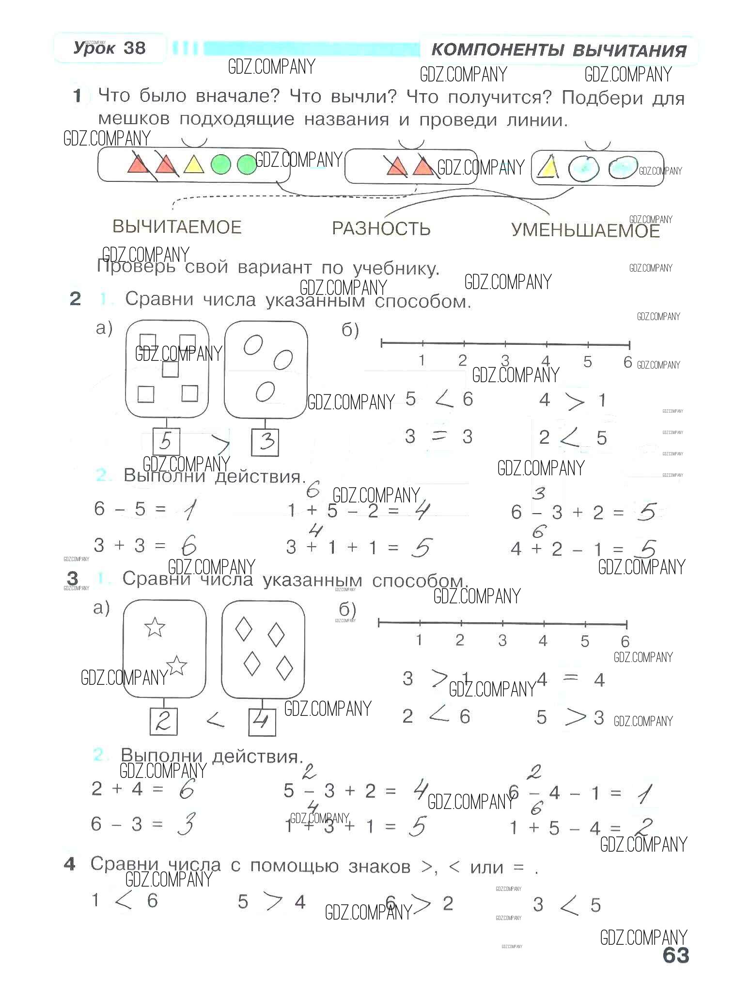 Здесь готовые ответы по Математике за 1 (первый) класс от Петерсон Рабочая тетрадь Учусь учиться (издательство: Ювента от 2016 г.) № 63