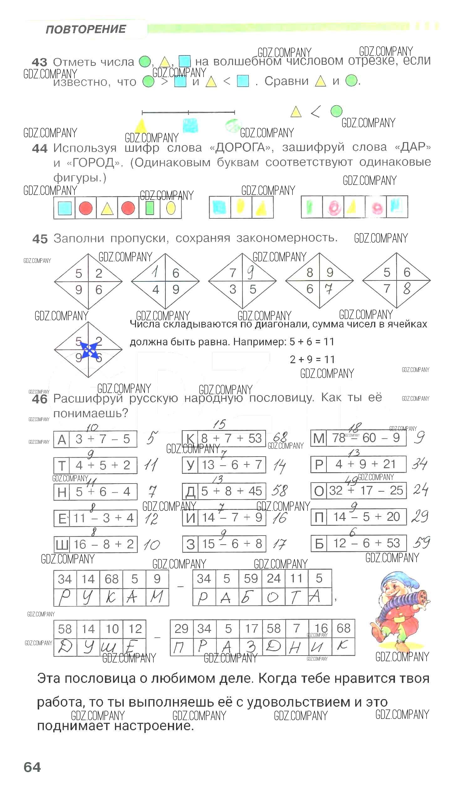 Здесь готовые ответы по Математике за 1 (первый) класс от Петерсон Рабочая тетрадь Учусь учиться (издательство: Ювента от 2016 г.) № 64