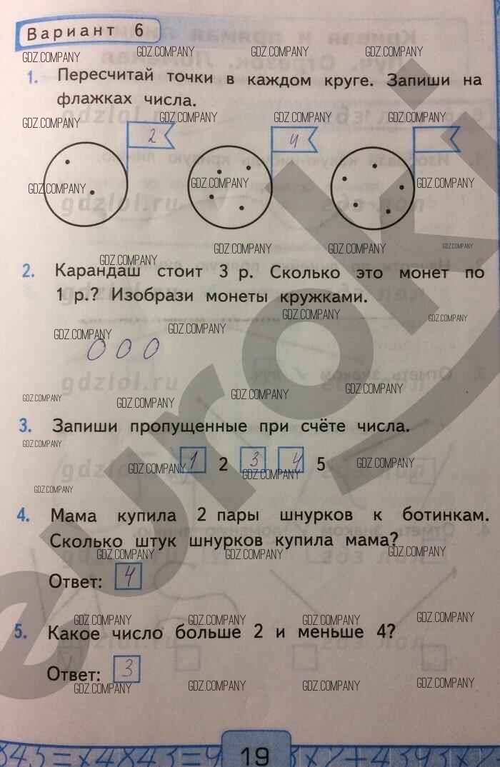 Здесь готовые ответы по Математике за 1 (первый) класс от Рудницкая Контрольные работы УМК (издательство: Экзамен от 2014 г.) № 19