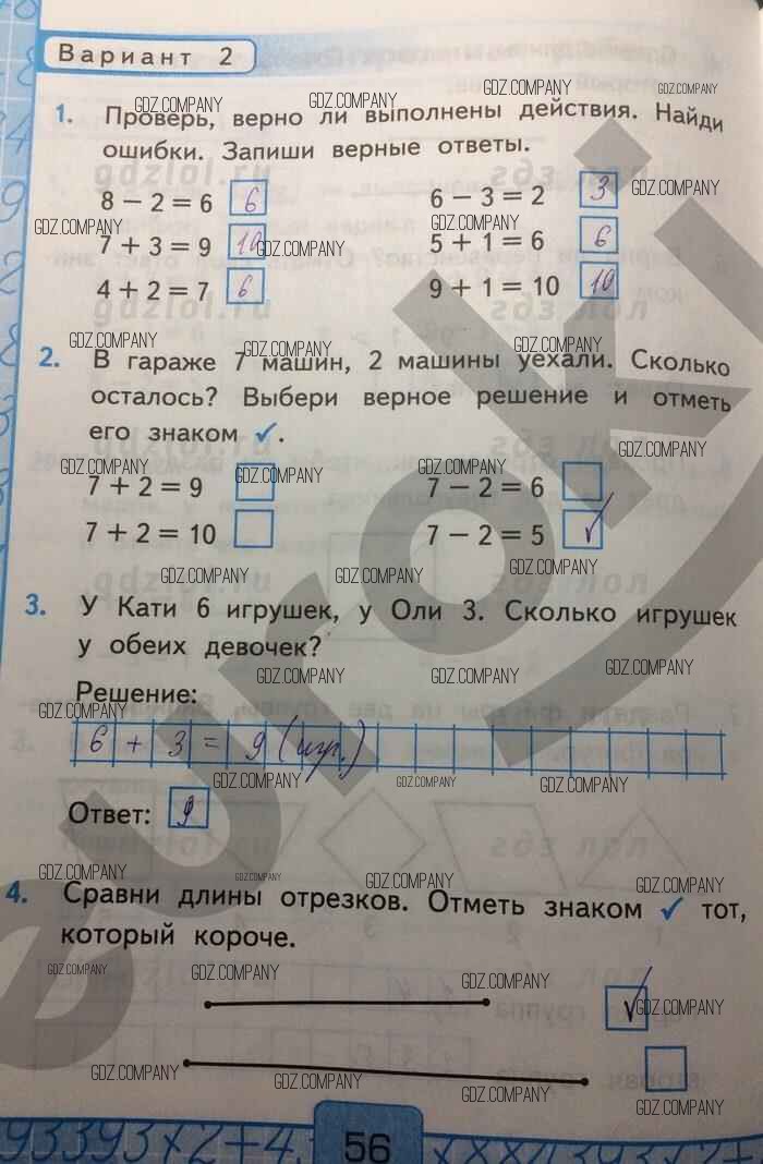 Здесь готовые ответы по Математике за 1 (первый) класс от Рудницкая Контрольные работы УМК (издательство: Экзамен от 2014 г.) № 56