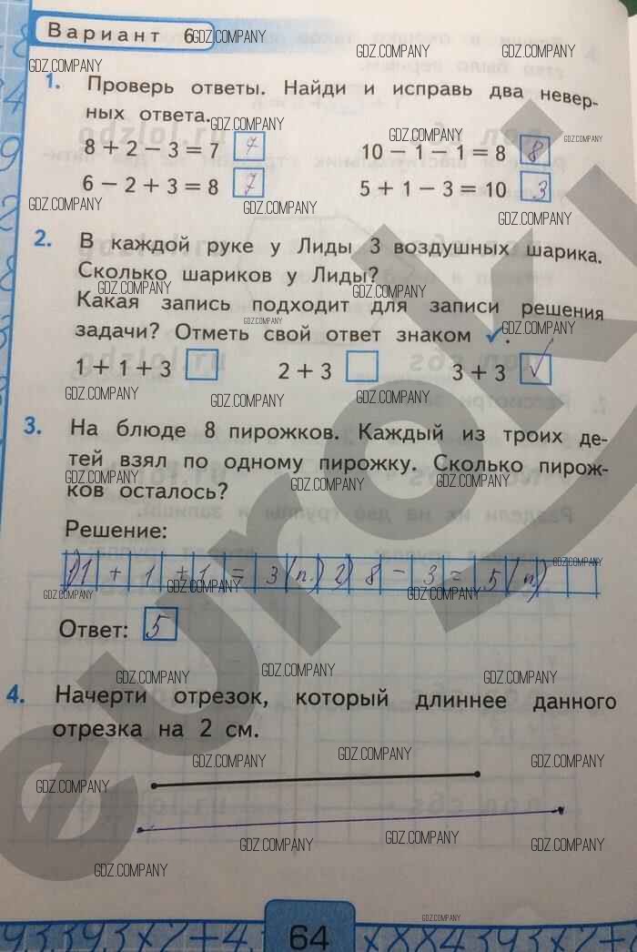 Здесь готовые ответы по Математике за 1 (первый) класс от Рудницкая Контрольные работы УМК (издательство: Экзамен от 2014 г.) № 64