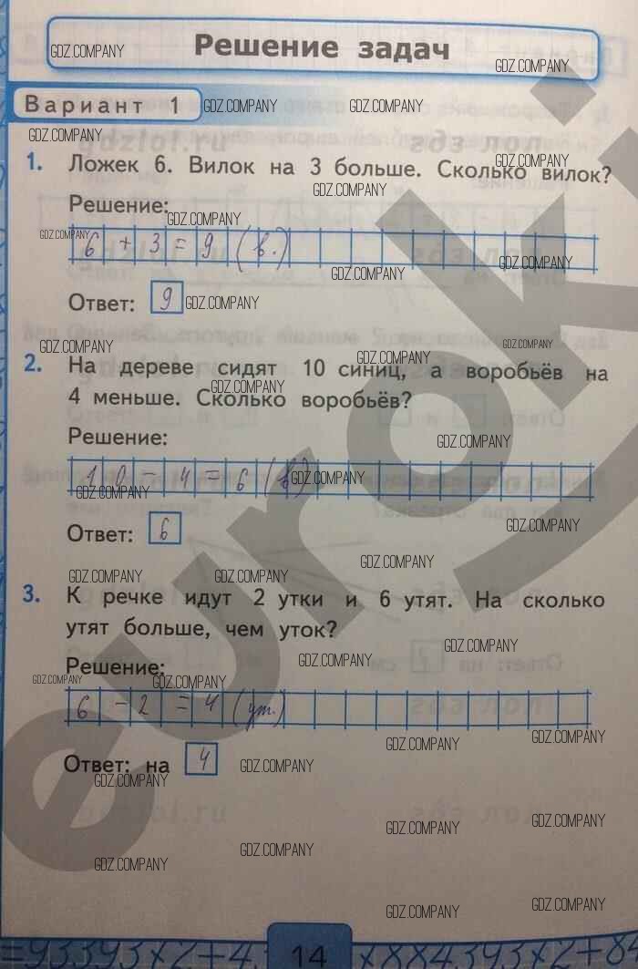 Здесь готовые ответы по Математике за 1 (первый) класс от Рудницкая Контрольные работы УМК (издательство: Экзамен от 2014 г.) № 14