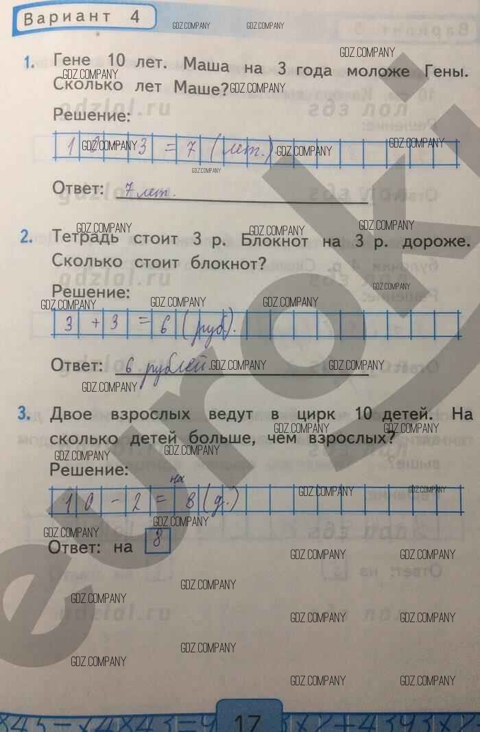 Здесь готовые ответы по Математике за 1 (первый) класс от Рудницкая Контрольные работы УМК (издательство: Экзамен от 2014 г.) № 17