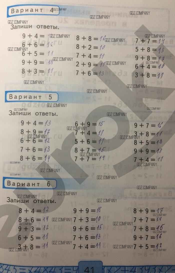 Здесь готовые ответы по Математике за 1 (первый) класс от Рудницкая Контрольные работы УМК (издательство: Экзамен от 2014 г.) № 41