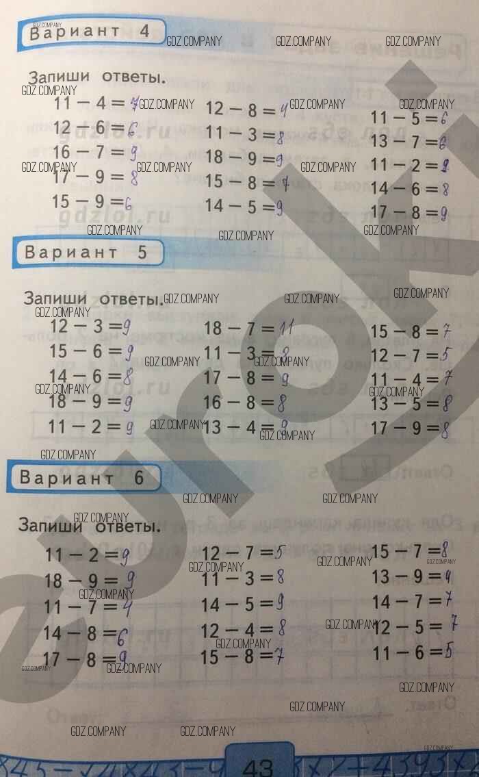 Здесь готовые ответы по Математике за 1 (первый) класс от Рудницкая Контрольные работы УМК (издательство: Экзамен от 2014 г.) № 43