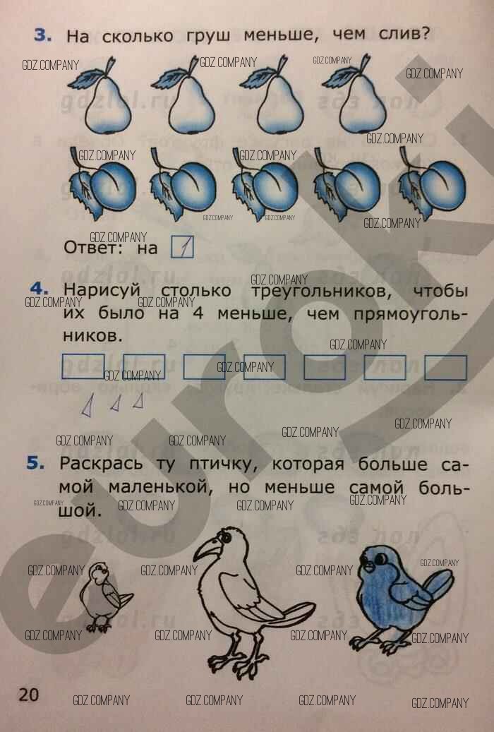 Здесь готовые ответы по Математике за 1 (первый) класс от Самсонова Самостоятельные работы УМК (издательство: Экзамен от 2014 г.) № 20