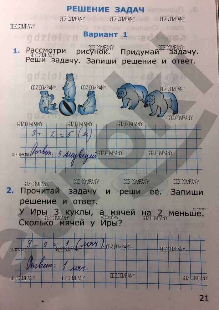 Здесь готовые ответы по Математике за 1 (первый) класс от Самсонова Самостоятельные работы УМК (издательство: Экзамен от 2014 г.) № 21