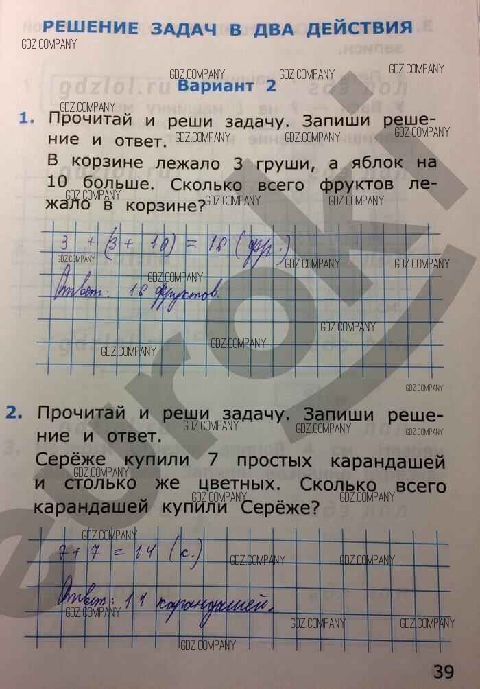 Здесь готовые ответы по Математике за 1 (первый) класс от Самсонова Самостоятельные работы УМК (издательство: Экзамен от 2014 г.) № 39