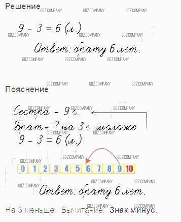 (рис.1) Сестре 9 лет, а брат на 3 года моложе. Сколько лет брату?
