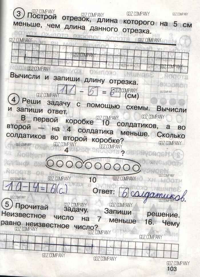 Здесь готовые ответы по Математике за 1 (первый) класс от Захарова, Юдина Тетрадь для самостоятельной работы Перспективная начальная школа (издательство: Академкнига от 2016 г.) № 103