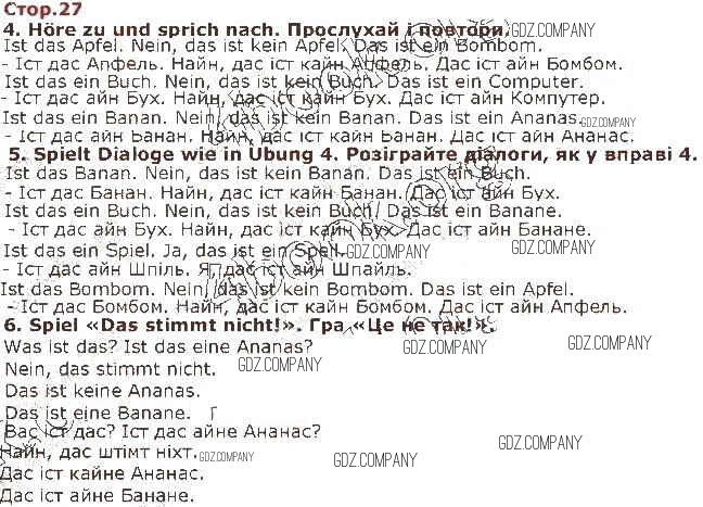 Здесь готовые ответы по Немецкому языку за 1 (первый) класс от Сотникова Учебник (издательство: Ранок от 2018 г.) № 27