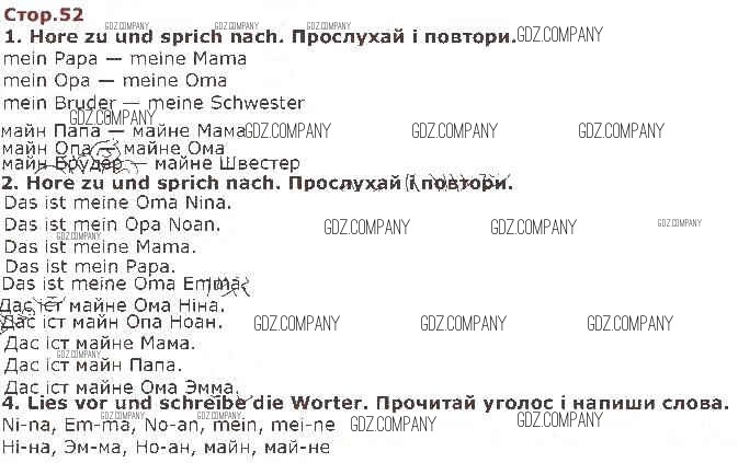 Здесь готовые ответы по Немецкому языку за 1 (первый) класс от Сотникова Учебник (издательство: Ранок от 2018 г.) № 52