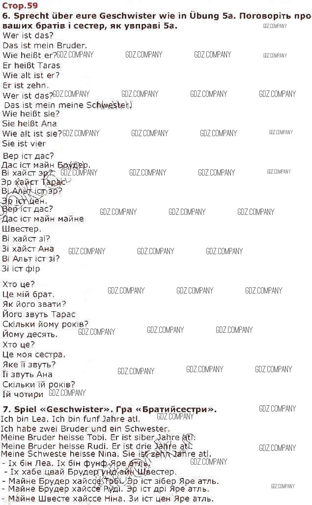 Здесь готовые ответы по Немецкому языку за 1 (первый) класс от Сотникова Учебник (издательство: Ранок от 2018 г.) № 59