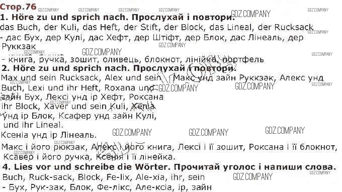 Здесь готовые ответы по Немецкому языку за 1 (первый) класс от Сотникова Учебник (издательство: Ранок от 2018 г.) № 76