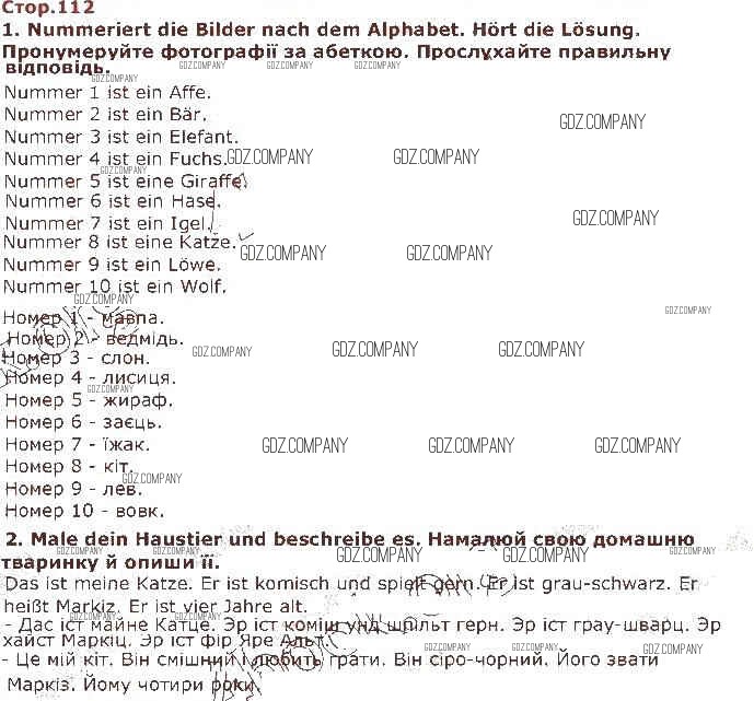 Здесь готовые ответы по Немецкому языку за 1 (первый) класс от Сотникова Учебник (издательство: Ранок от 2018 г.) № 112